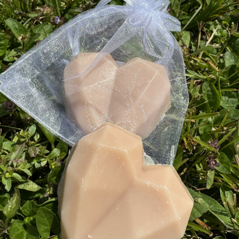Savon coeur : 1 savon à la rose emballé dans un sac organza