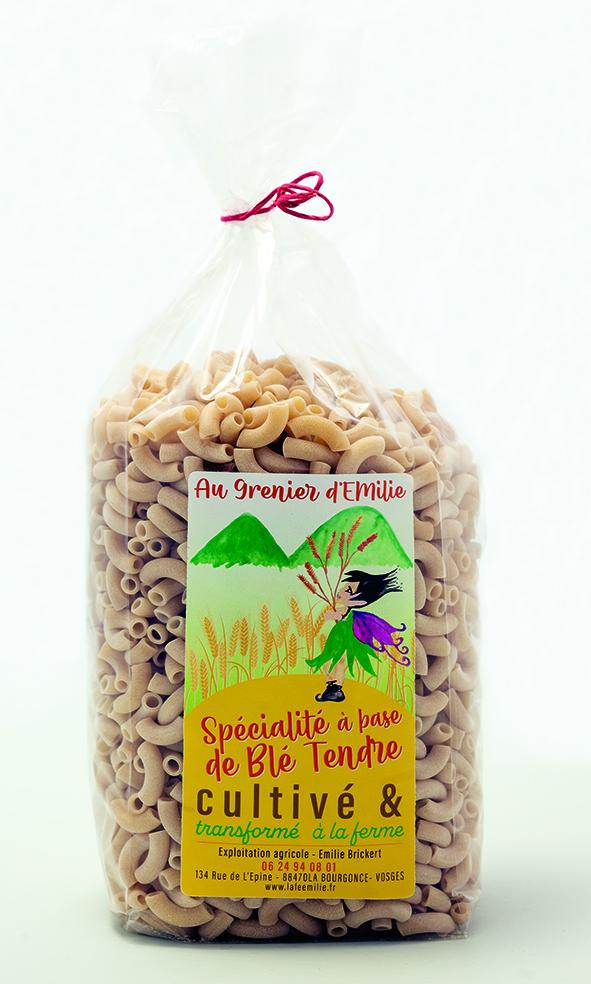 Spécialité a base de blé tendre transformé a la ferme , blé cultivé en agriculture raisonnée, séchage lent a basse température .