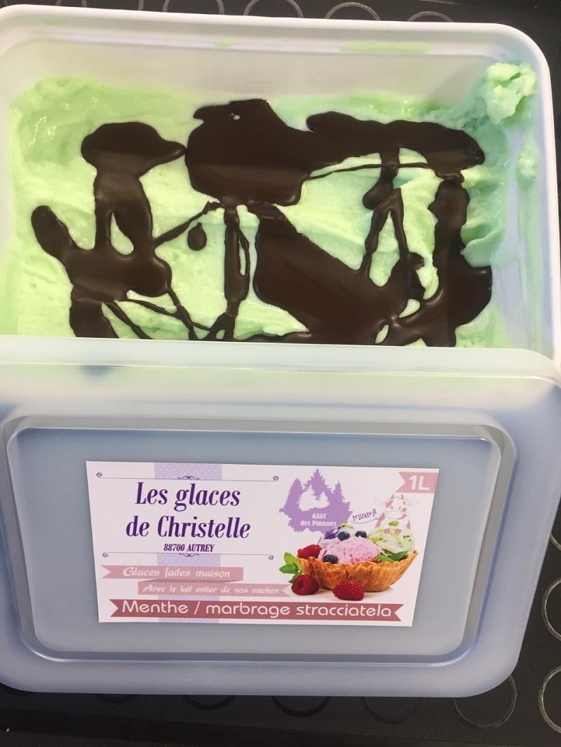 Ingrédients: lait entier pasteurisé,sucre en poudre,lait écrémé en poudre,matières protéiques du lait, crème,arôme menthe,marbrage stracciatella(dont lécithine:soja).