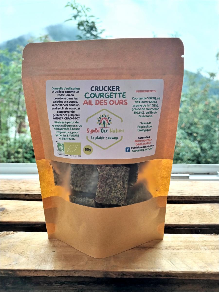 Ingrédients: Courgette*, graine de lin, graine de tournesol*, ail des ours*, sel de Guérande.