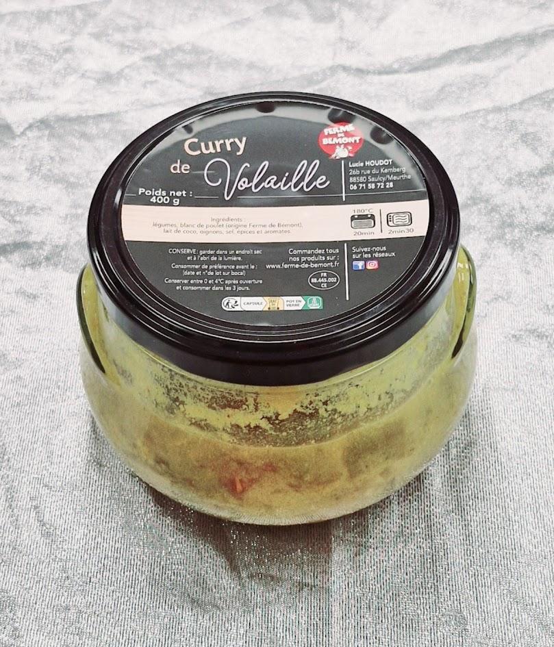 Viande de volaille mijotée avec des légumes et du lait de coco.