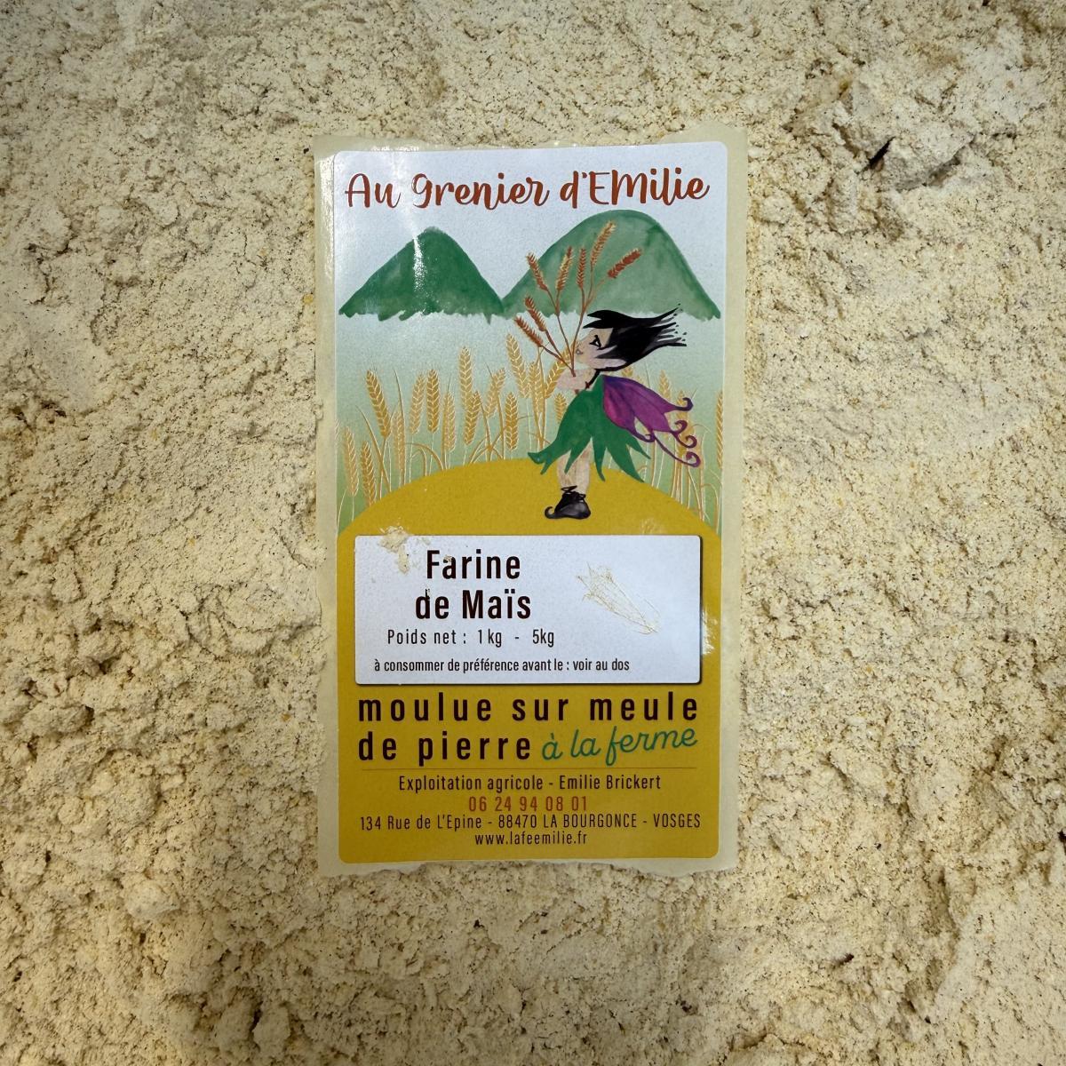 Farine de mais produit à la ferme et moulu à la meule de pierre .