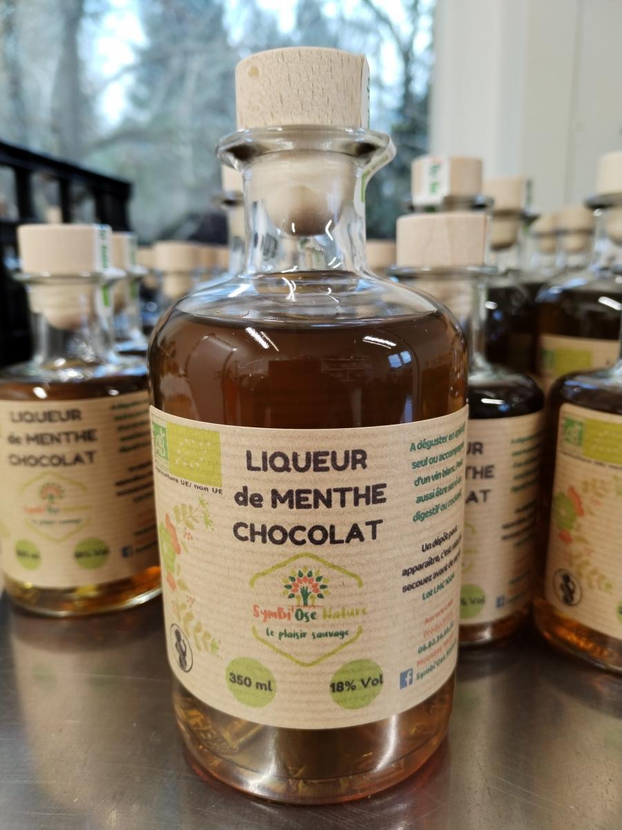Liqueur de Menthe chocolat AB 18%Vol à déguster en apéritif ou digestif. Idéal pour les fêtes ;)