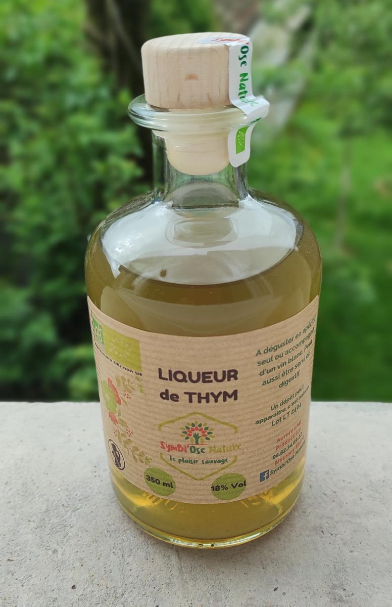Liqueur de thym AB 18%Vol à déguster en apéritif ou digestif. Peut aussi être mélangé avec du vin blanc ou de la bière.