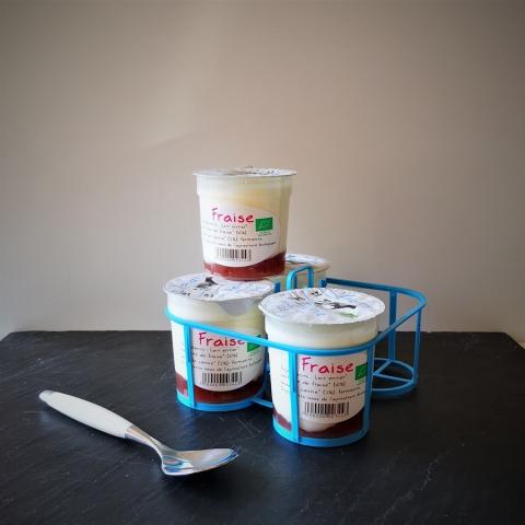 Lot de 4 yaourts sur lit de confiture de fraise bio