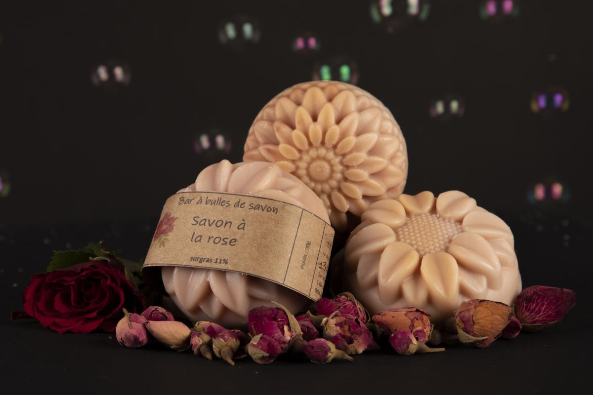 Composition (INCI) : sodium cocoate, sodium olivate, aqua, sodium shea butterate, glycerin, sodium rapeseedate, sodium castorate, rosa canina fruit oil, cocos nucifera oil, rosa damasoena flower, olea europaea fruit oil, butyrospermum parkii butter, brasssicacampestris seed oil, ricinus communis seed oil, rubia cordifoliaroot extract
