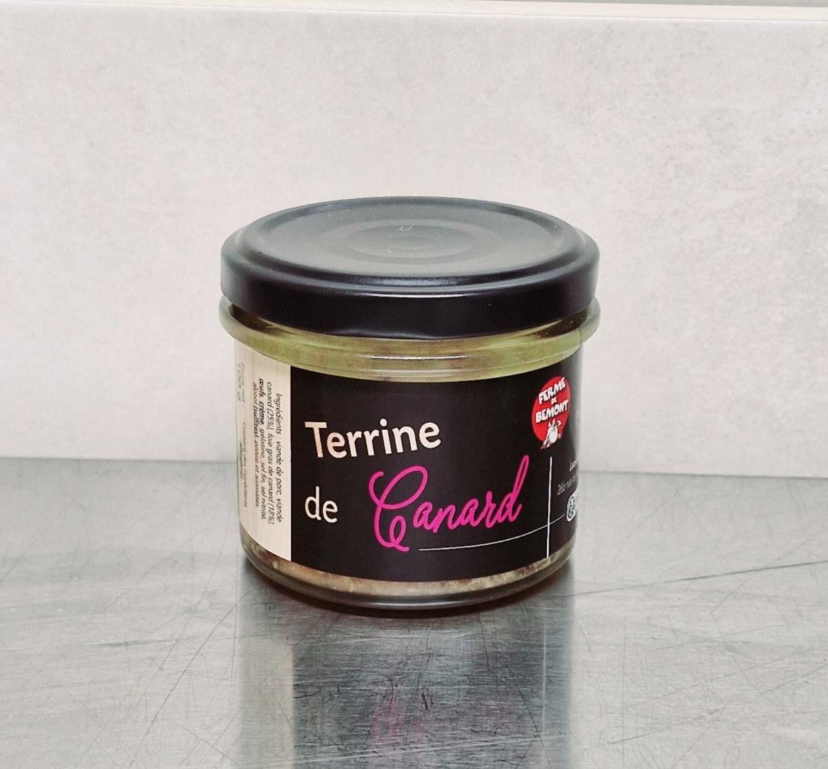 La terrine de canard se présente en bocal qui se conserve à température ambiante. Il suffit de la mettre au frais la veille de les consommer.